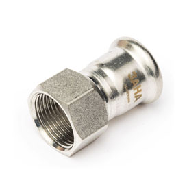 NiroPress AISI 304L муфта с накидной гайкой ВПр-ВР, плоское уплотнение, гайка нержавеющая сталь, ?18x3/4