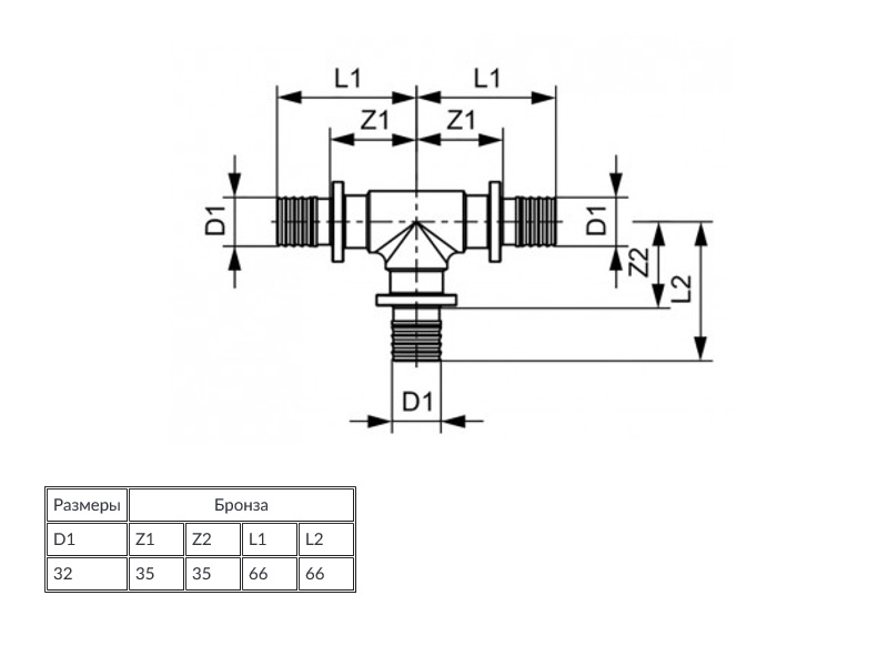Тройник 90*, 63 x 63 x 63, бронза