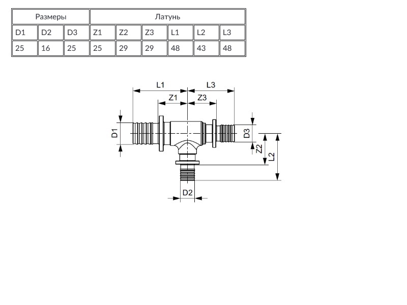 Тройник 90* редукционный 16 х 20 х 16, латунь, TECE, TECEflex