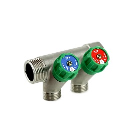 Коллекторы латунные с вентилями, наружная резьба