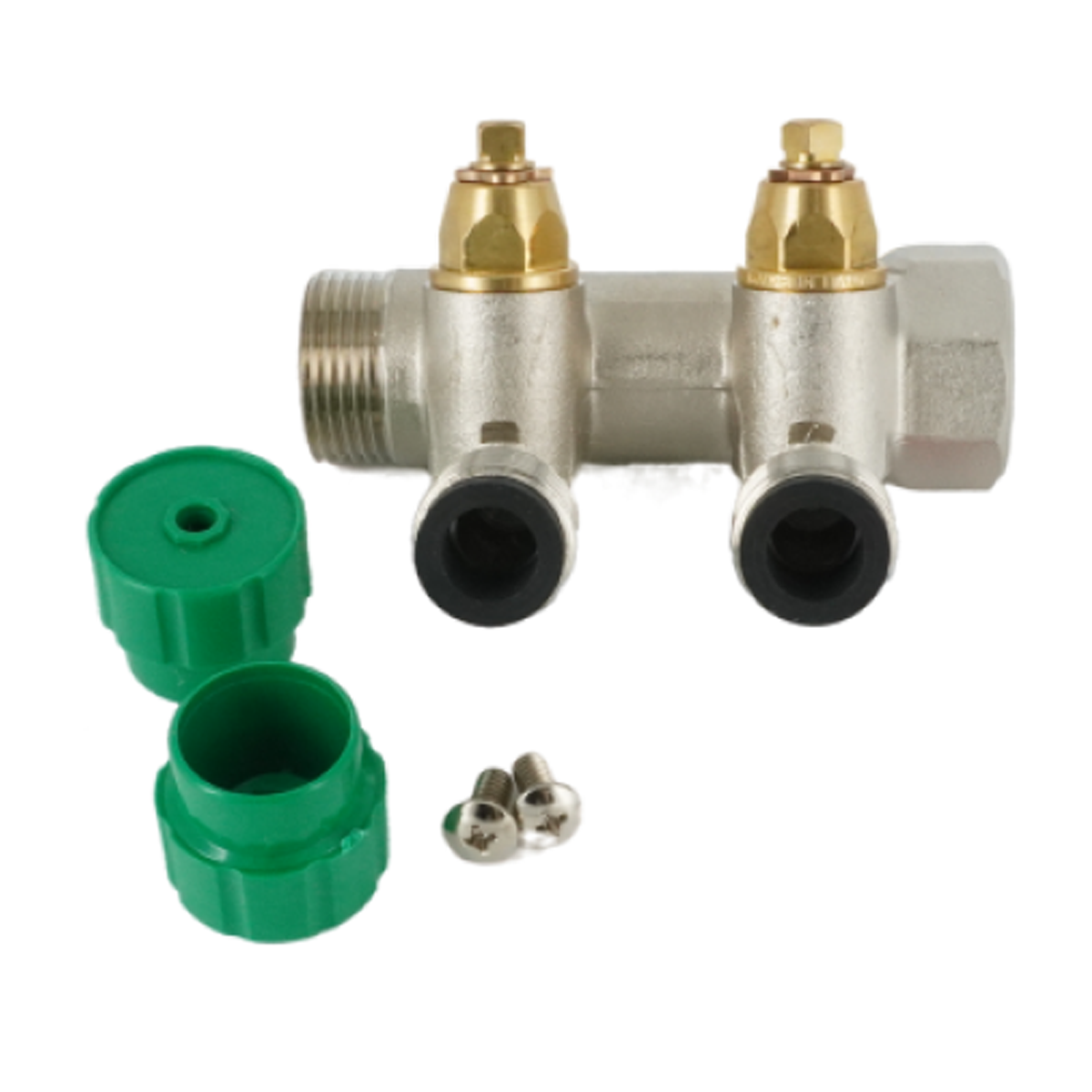 Коллектор модульный, ELSEN, 3/4", 2 контура, размер отвода-1/2" НР ПУ, PN, бар-10, T°C -70, с вентилями, латунь
