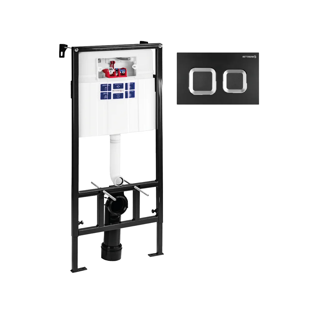 Инсталляция BETTOSERB для подвесного унитаза Sava Fix Slim в комплекте с клавишей смыва чёрный матовый + хром глянец квадр. SMART
