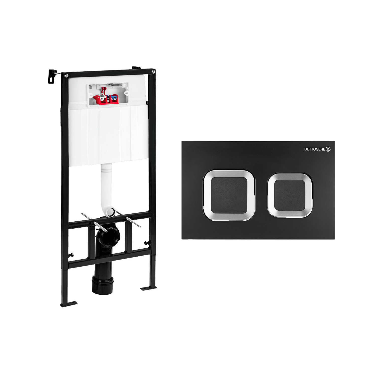 Инсталляция BETTOSERB для подвесного унитаза Sava Fix Slim в комплекте с клавишей смыва чёрный матовый + золото глянец квадр. SMART