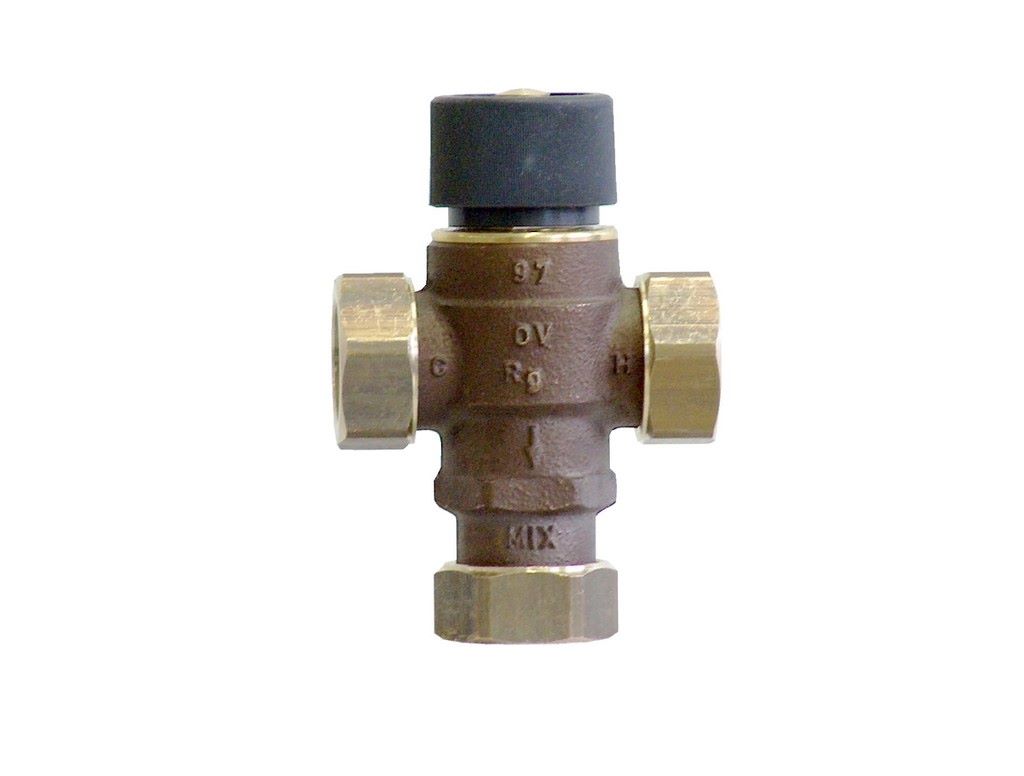 Вентиль, Oventrop, Brawa-Mix, смесительный термостатический, трёхходовой, DN-20, НГ 1", PN, бар-10, T°C -до 90, корпус бронза, внутренние части латунь (EZB), для ГВС с защитой от ожогов
