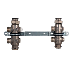 Сборный коллектор, латунный 1" x 3/4"E/2 с отсечными регулирующими клапанами, с отводами с наружной резьбой, модель с отводами 3/4"E имеет прокладки на корпусе коллектора