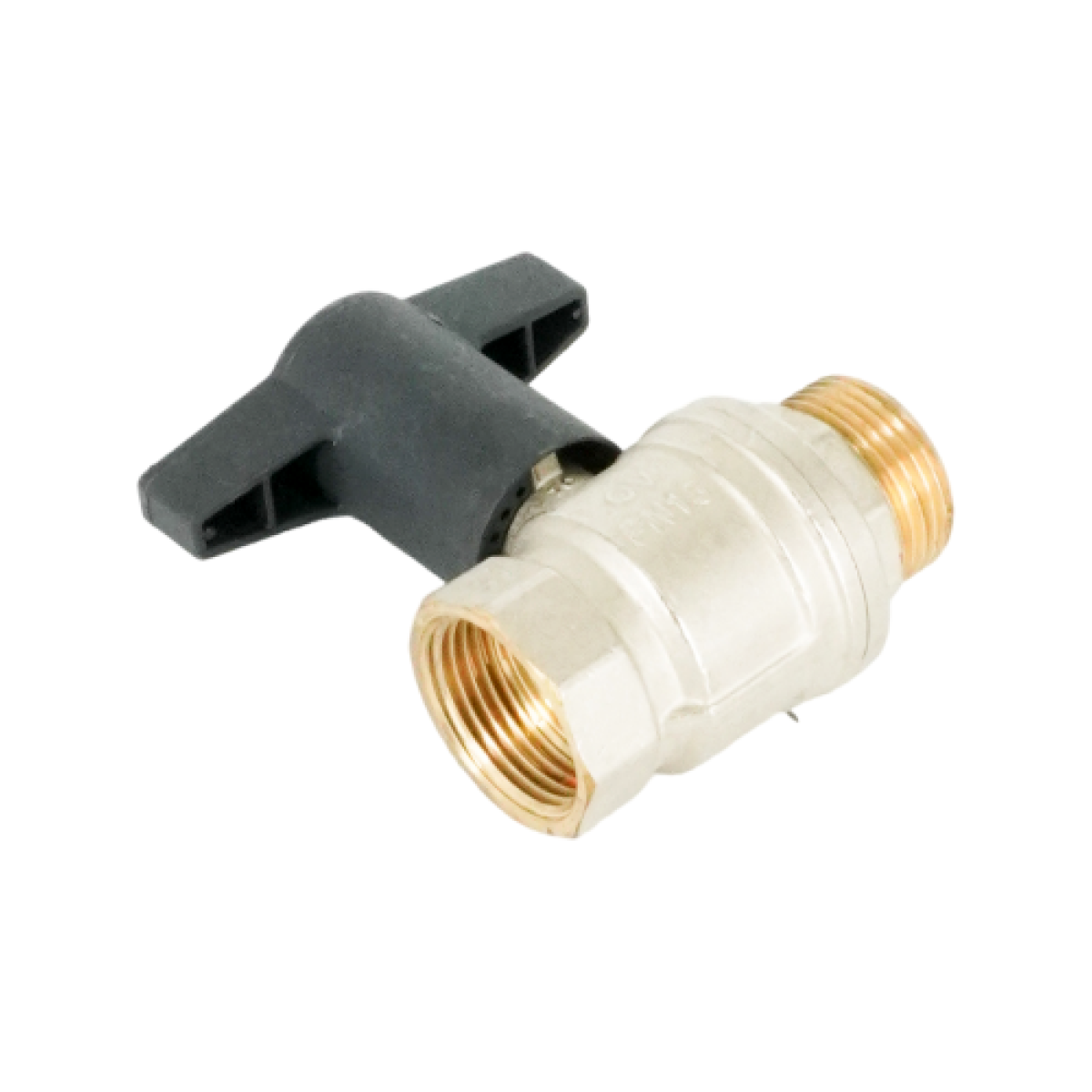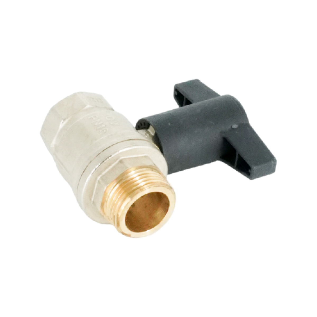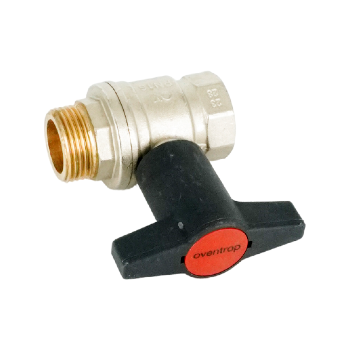 Кран шаровой, Oventrop, Optibal, полнопроходной, DN-25, 1", НВ, PN, бар-16, ручка-пластмассовая, удлинённая антрацит, латунь, никелированный
