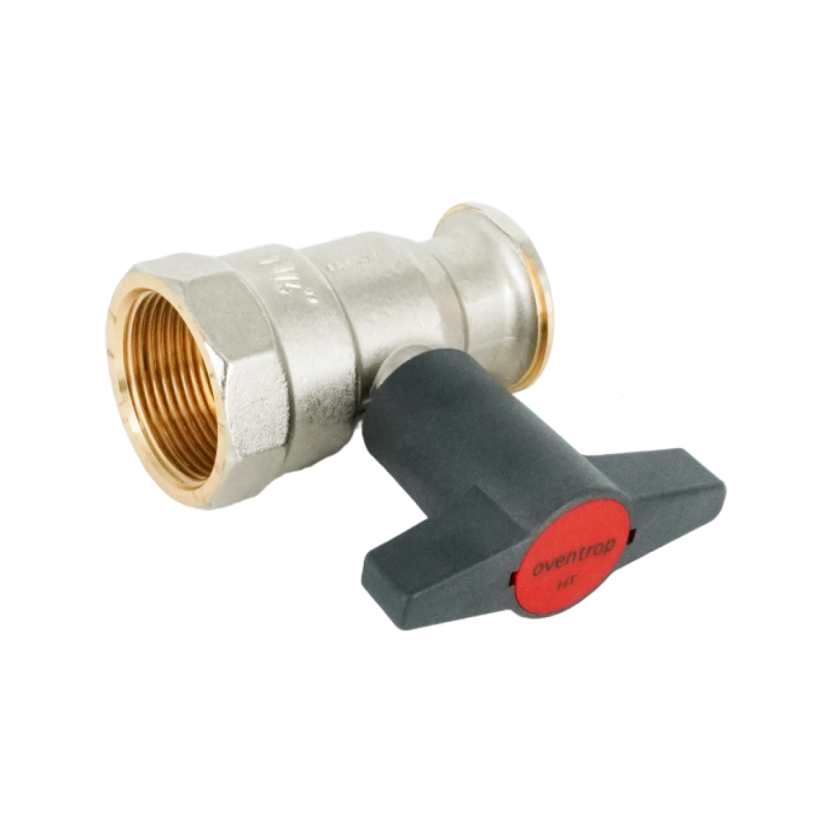 Кран шаровой, Oventrop, Optibal P, для обвязки насоса, DN-32, 1 1/4", 1 1/2", ВНГ, PN, бар-10, латунь, никелированный, без обратного клапана, T°C -120