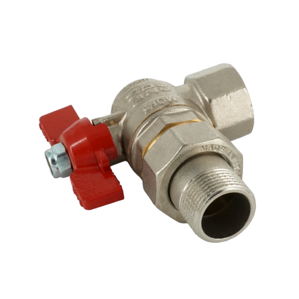 Кран шаровой, ELSEN, полнопроходной, угловой, 3/4", НВ, PN 40, T°C -от -20 до +140, ручка-бабочка, с разъемным соединением, латунь