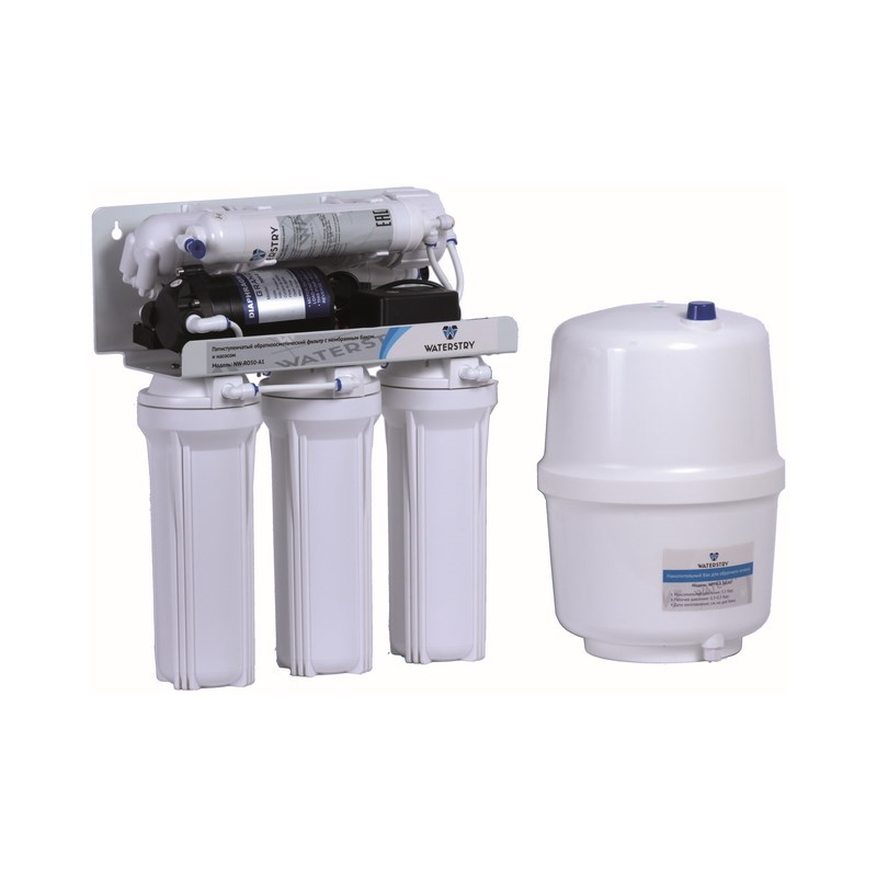 Система обратного осмоса Waterstry RO 50-A1 5 ступеней c насосом (производительность - 190 л/сут.; емкость накопительного бака - 11,6 л; давление воды - 0,6-5,0 бар; температура воды - 4-42°С)