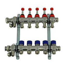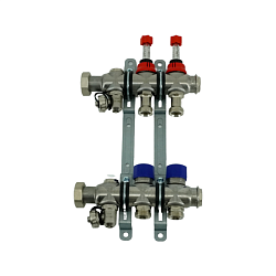 Коллекторная группа, ELSEN, 1", 10 контуров, размер отвода-3/4", PN, бар-4, T°C -от 0 до +70, с вентилями и расходомерами, нержавеющая сталь
