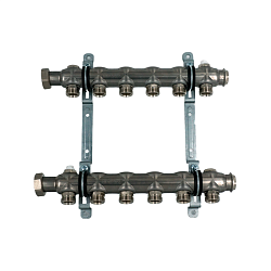 Коллекторные группы используются в системах радиаторного отопления и горячего /холодного водоснабжения. Корпус коллекторов выполнен из высококачественной нержавеющей стали AISI 304, гарантирующую длительный срок эксплуатации.