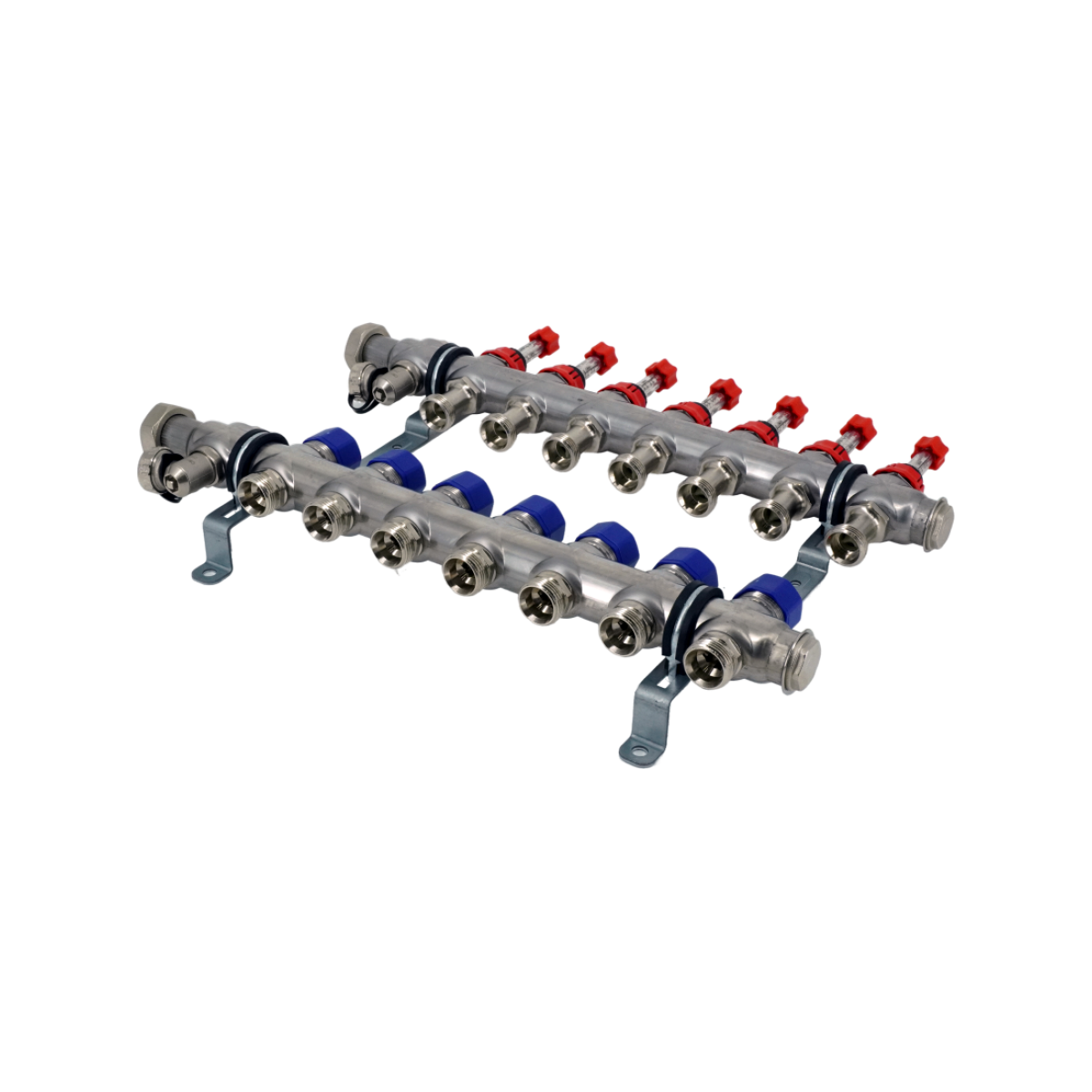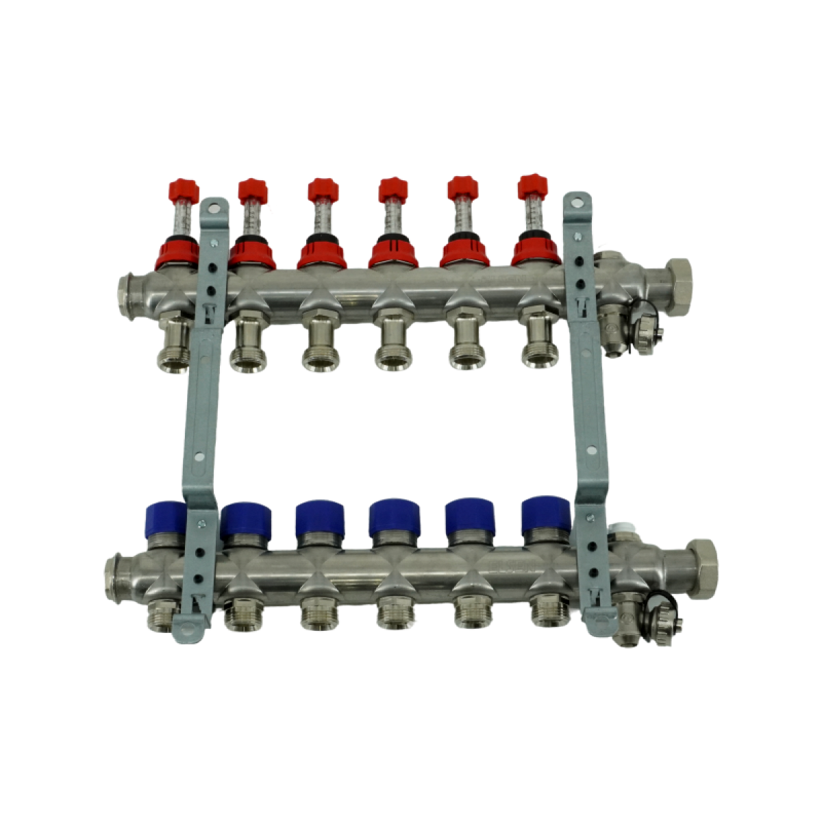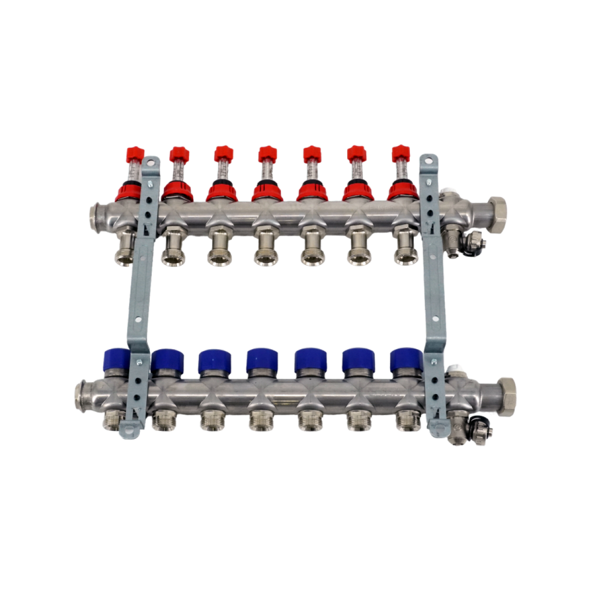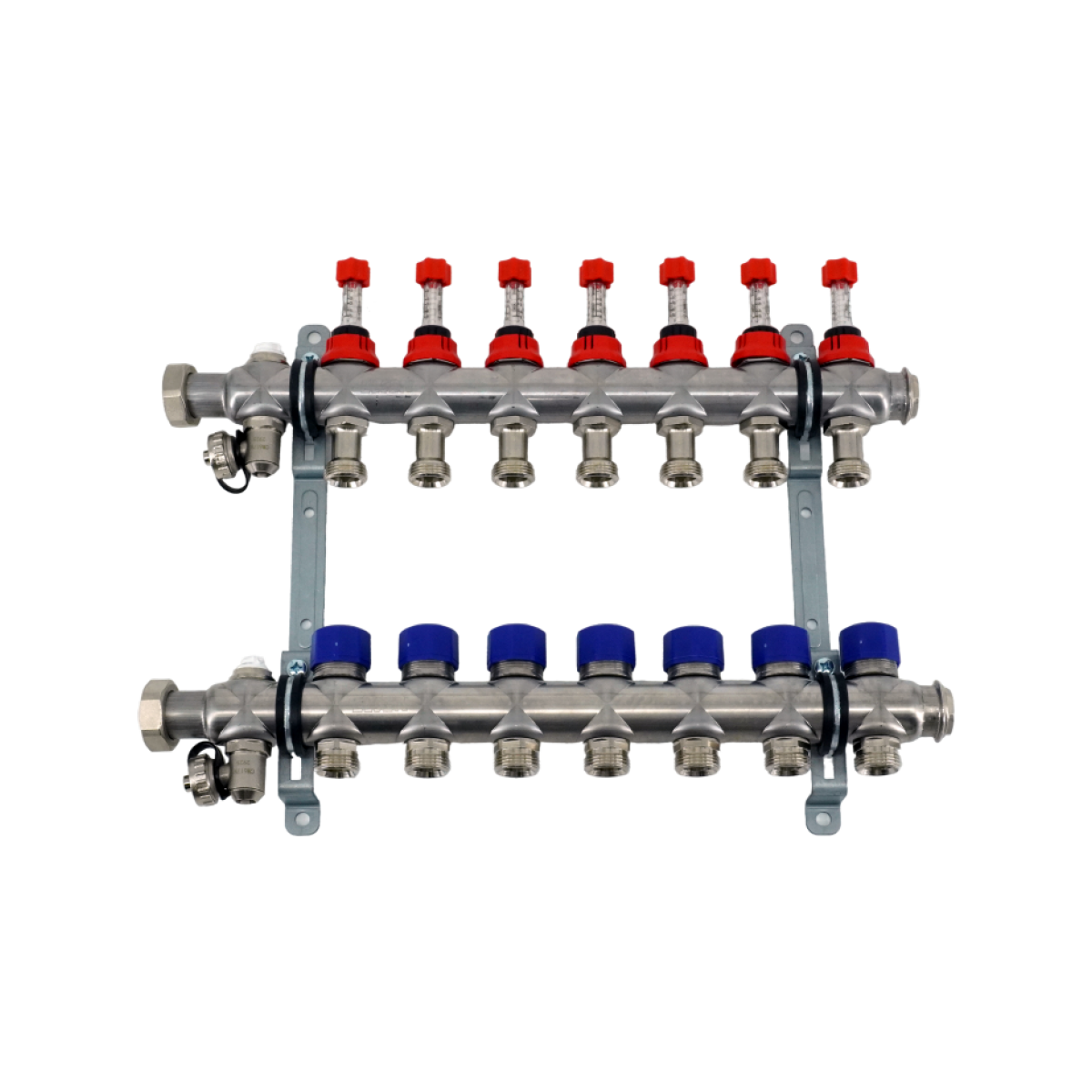 Коллекторная группа, ELSEN, 1", 7 контуров, размер отвода-3/4", PN, бар-4, T°C -от 0 до +70, с вентилями и расходомерами, нержавеющая сталь