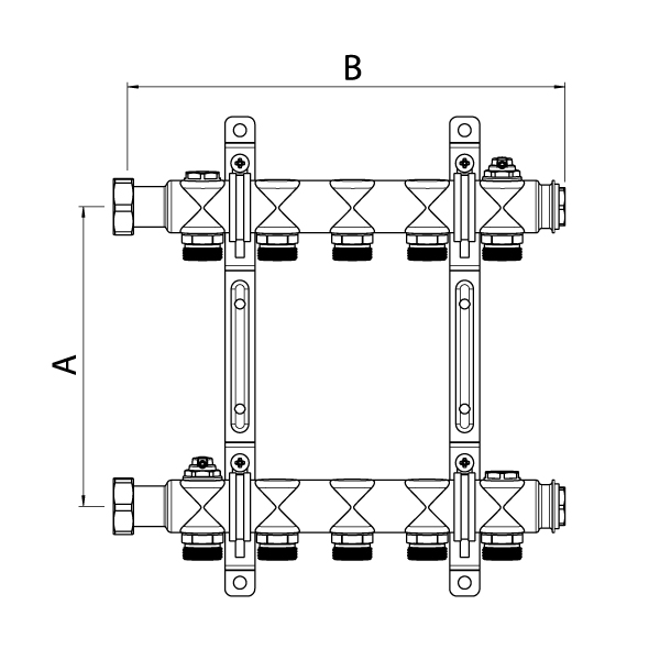 Коллекторная группа, ELSEN, 1", 9 контуров, размер отвода-3/4", PN, бар-6, T°C -от 0 до +90, без вентилей и расходомеров, нержавеющая сталь