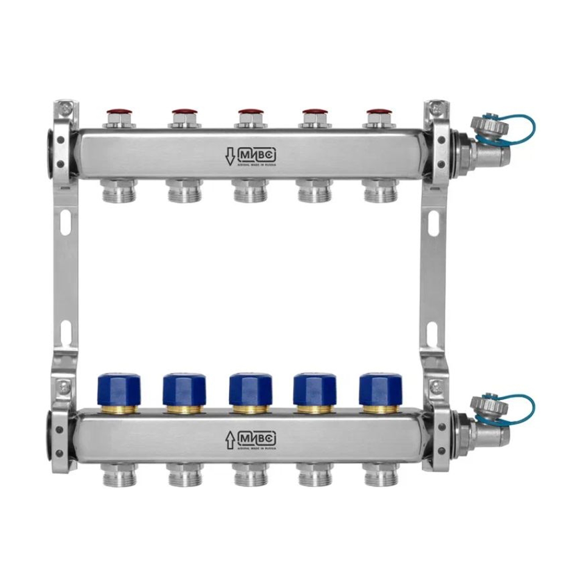 Коллекторная группа из нержавеющей стали с запорно-балансировочными клапанами и термостатическими клапанами, дренажными кранами, подключение 1”, размер отвода 3/4 E, 15 выходов, HH232D