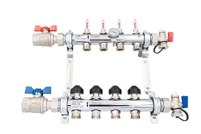 Комплект коллекторов РЕХАУ с шаровыми кранами HKV-D, G1", 11 контуров, выход-3/4" ЕК, нержавеющая сталь