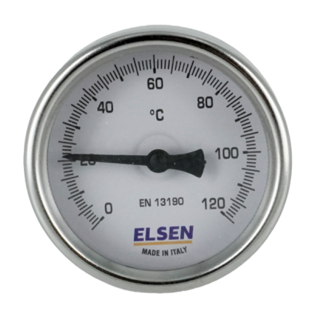 Термометр биметаллический, ELSEN, Ø-63, 1/2", В, осевой, шток-50 мм, D штока 9 мм. Прибор не внесен в реестр Средств Измерений, не применять согласно ст. 3 102-ФЗ от 26.06.2008