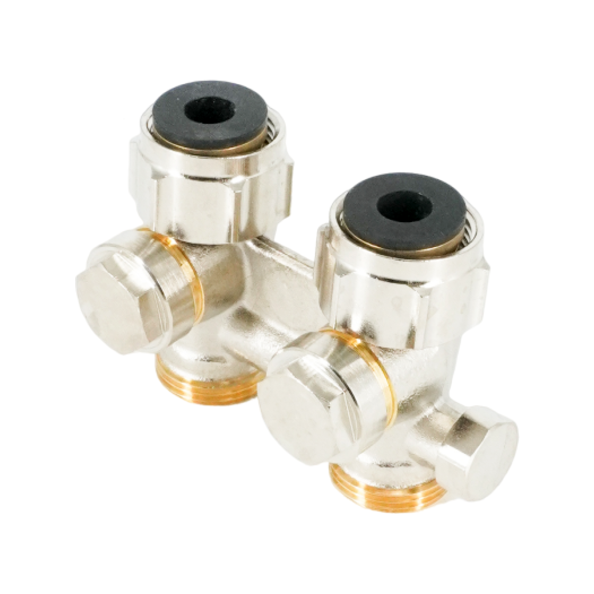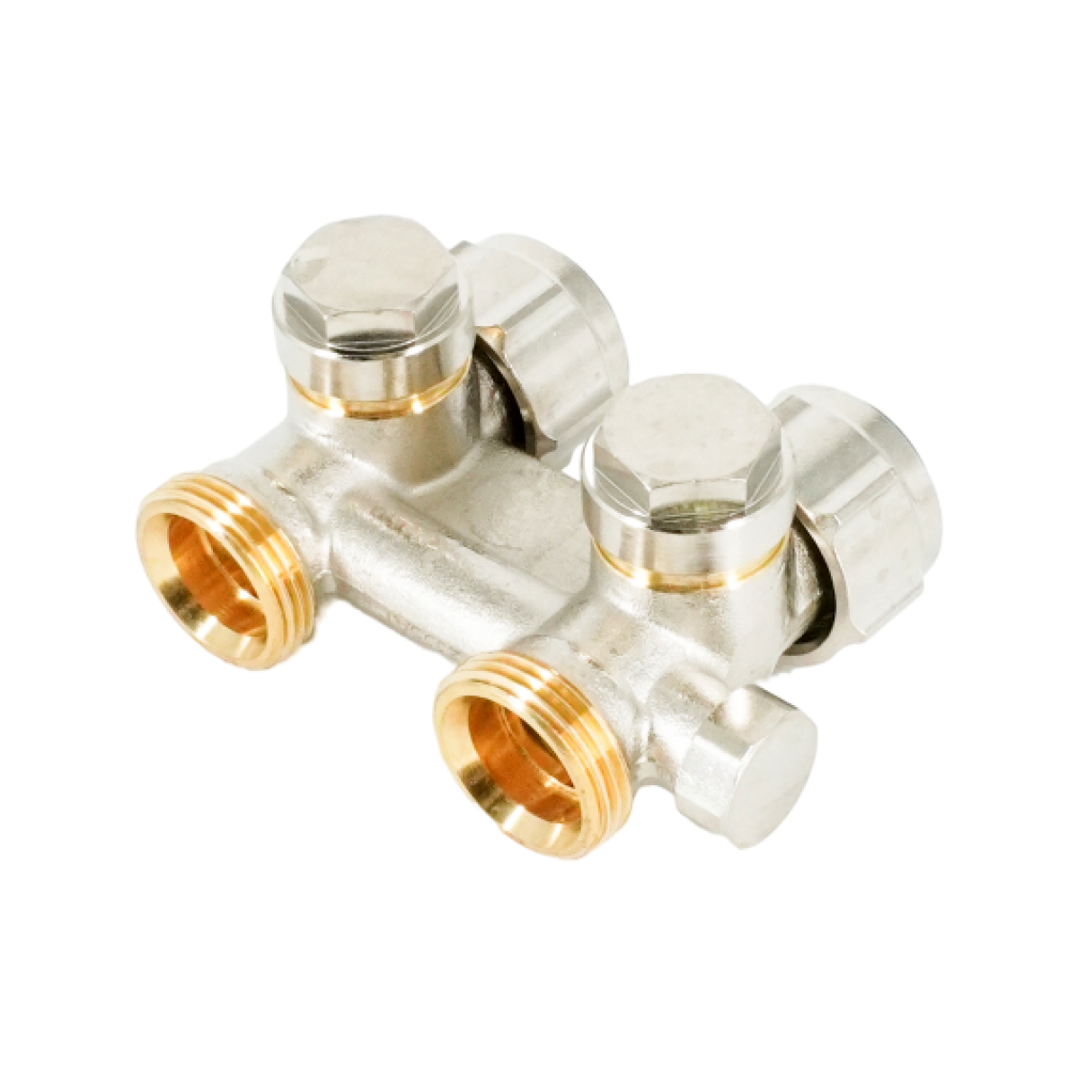 Узел Multiflex F, 1/2" HP x 3/4" HP, запорно-присоединительный, (CEW) для заполнения, слива, с предварительной настройкой, латунный, мягкое уплотнение, никелированный, для отопительных приборов со встроенным вентилем, с внутренней резьбой 1/2"