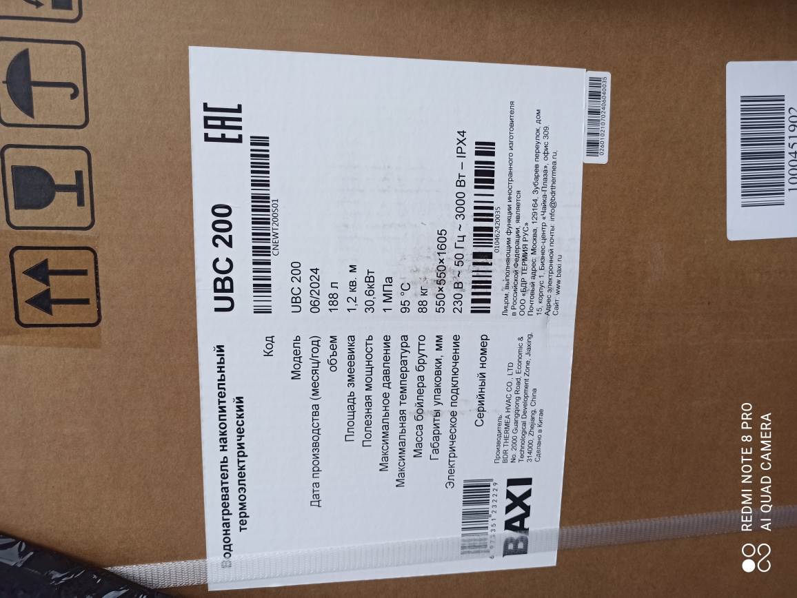 Водонагреватель косвенного нагрева, Baxi, UBC 200, накопительный, напольный, объём, л-200, эмалированная сталь, цвет-белый