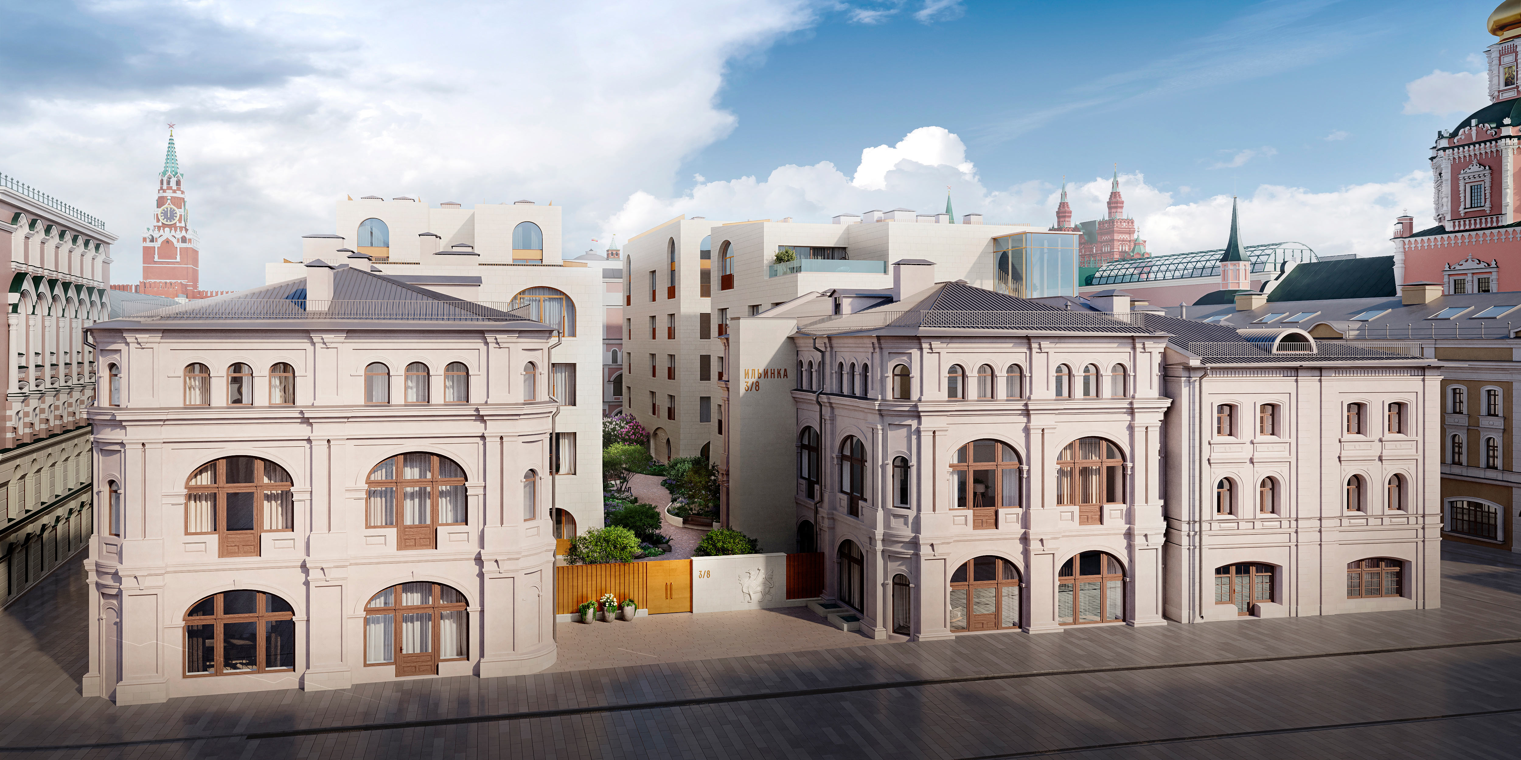 «Ильинка 3/8» — это сервисные резиденции в 7 эксклюзивных особняках: 3 исторических и 4 современных.